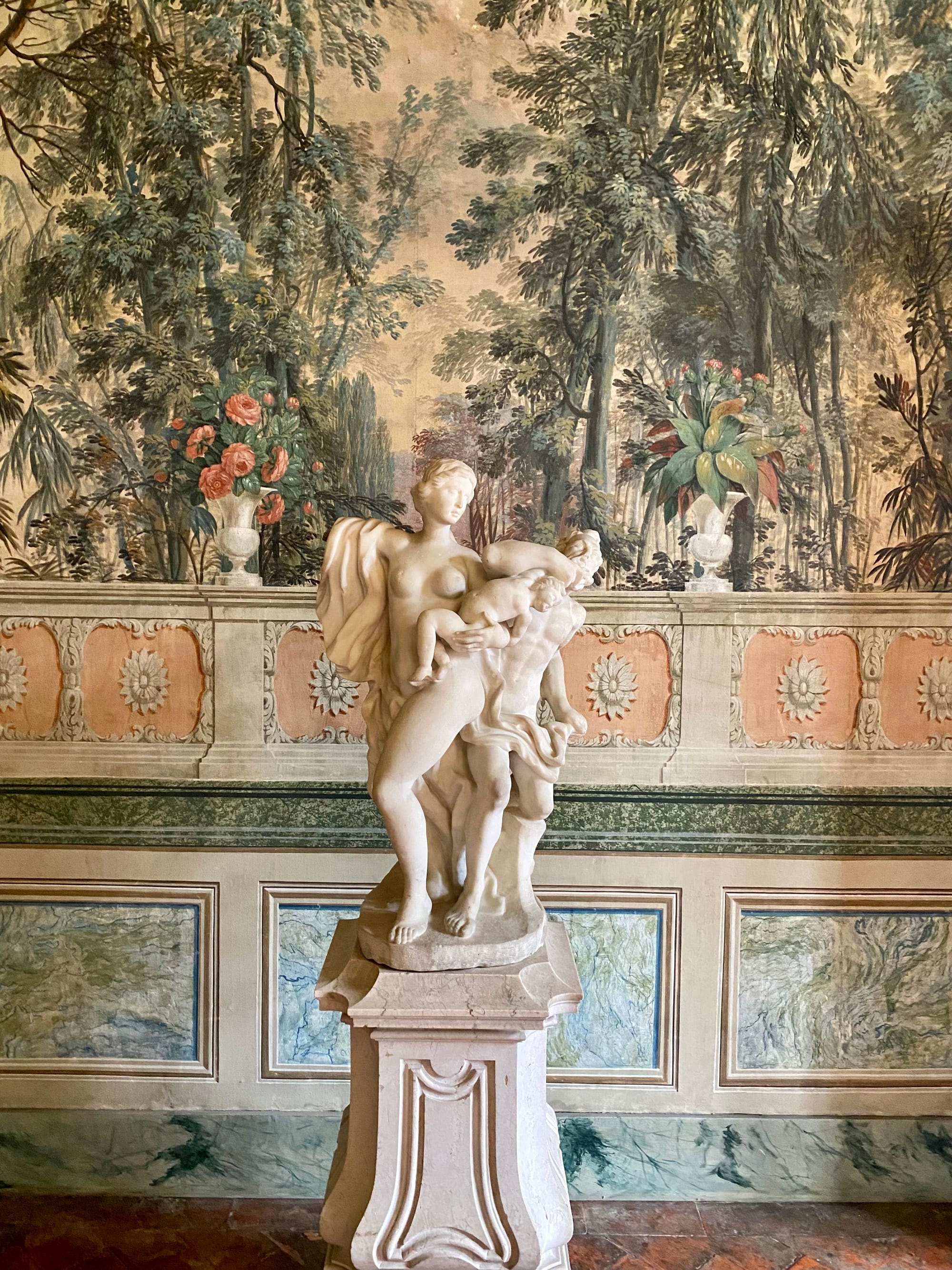 Just 20 minutes west of Lisbon is this fantastical palace, often compared to Versailles - but, we’d like to say it’s more ‘Beauty and the Beast.’ We glimpse this singular moment of dance amongst elaborate wall coverings before we enter the grand ballroom.