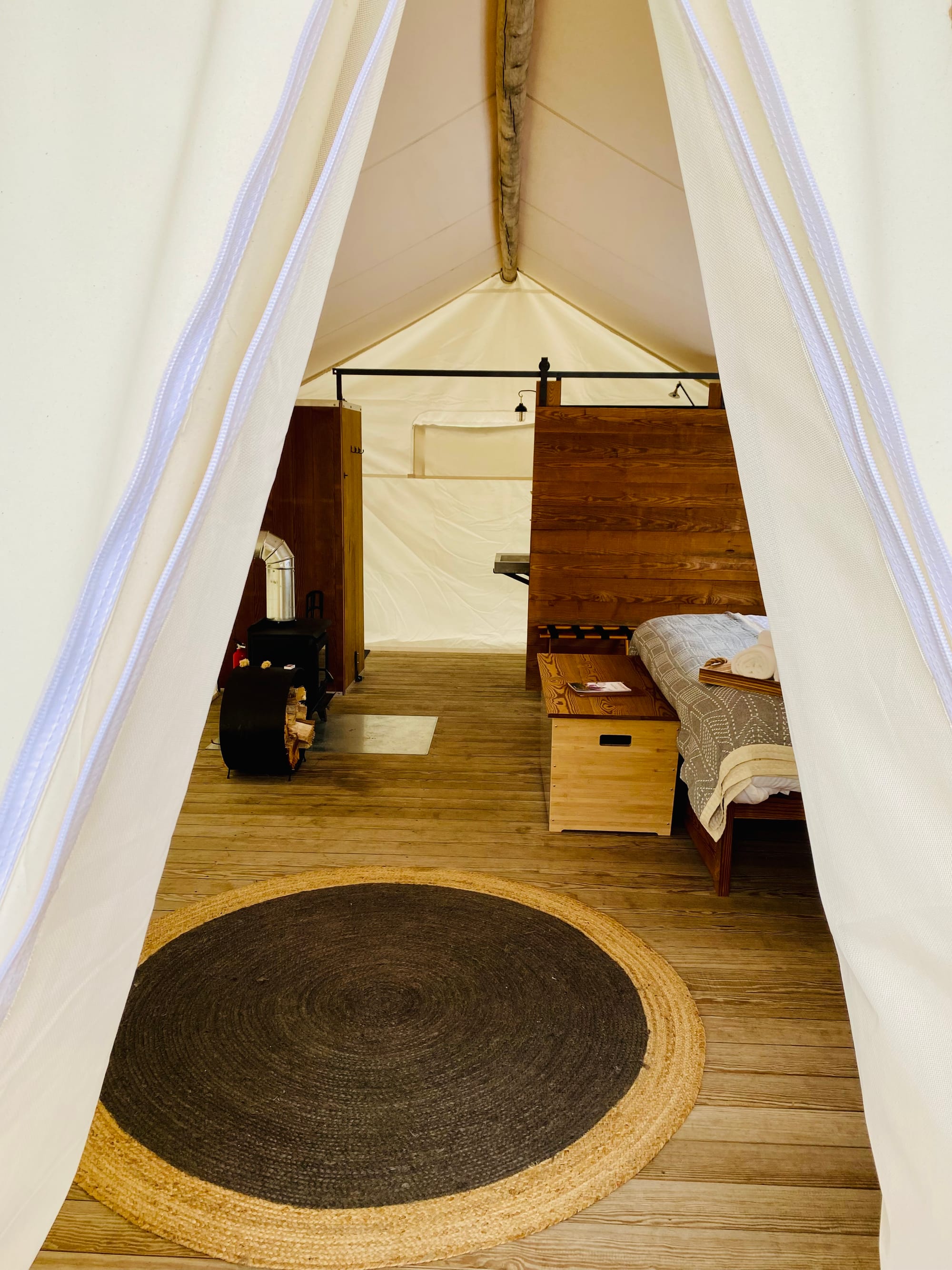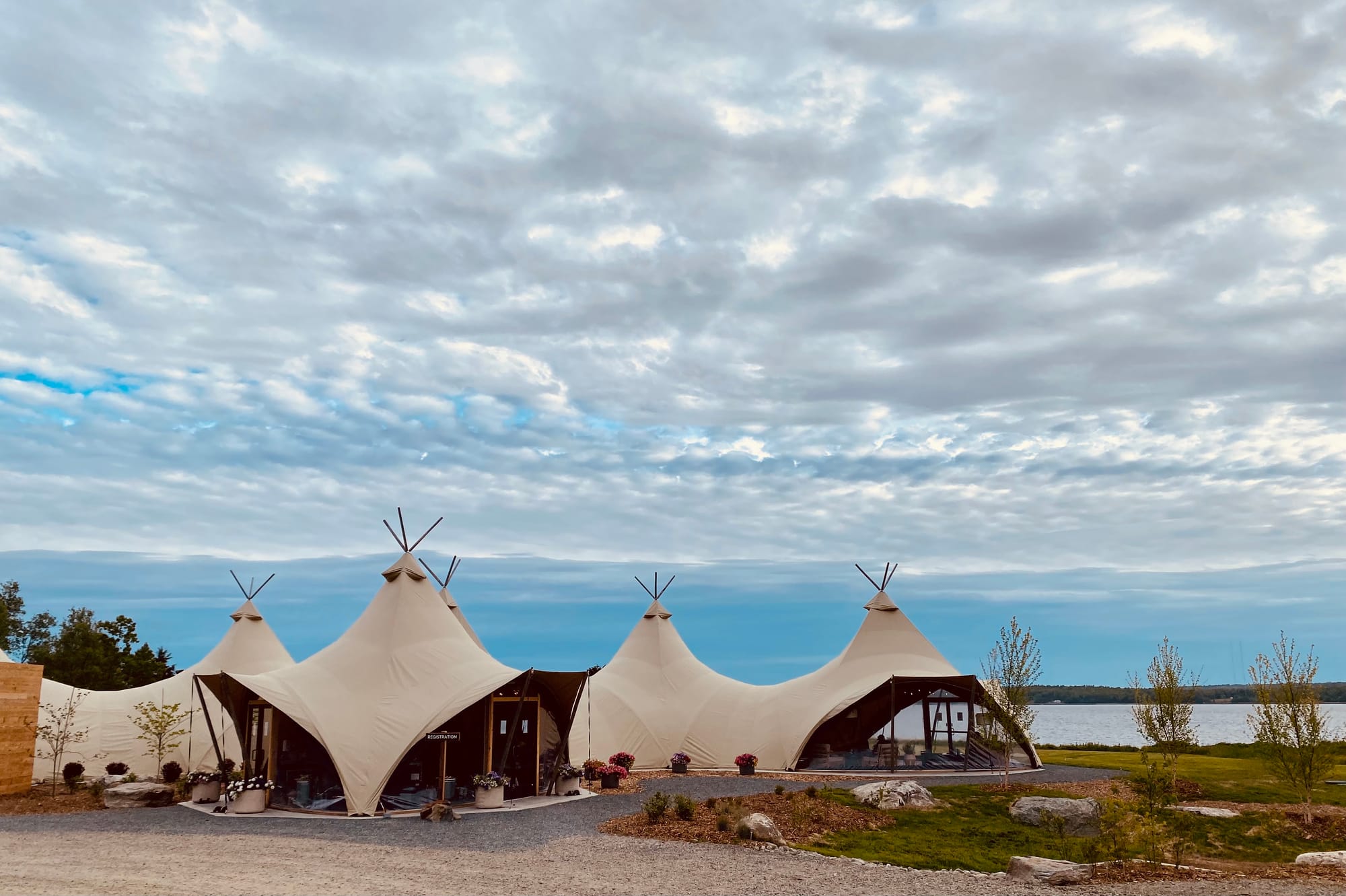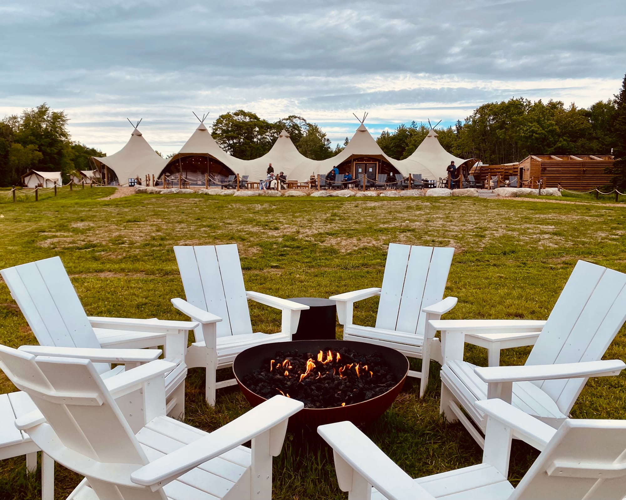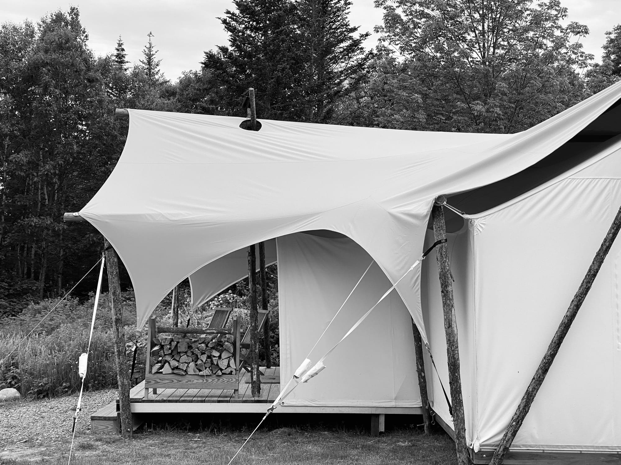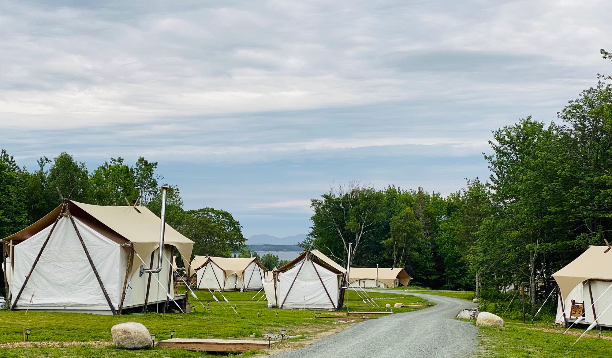 I'm not one for camping. But I will do some glamping. And that was my intention in trying out one of the new "Under Canvas" properties that have popped up around the United States, mostly around the national parks. So, when the Atlantic Coast's first flagship of the brand opened near Acadia National Park, I made it a part of our travel research list of must-visits. Luxurious tents are marketed with indoor, fully-plumbed bathrooms, beds with plush sheets and "stargazing roofs," fireplaces stacked with wood, ready to light. There are communal spaces for "dining" and fire pits with views of the bay and adjacent rocky cove. Never mind that the property was a 30 minute drive from Acadia, not even on the more prestigious real estate of Mount Desert Island.