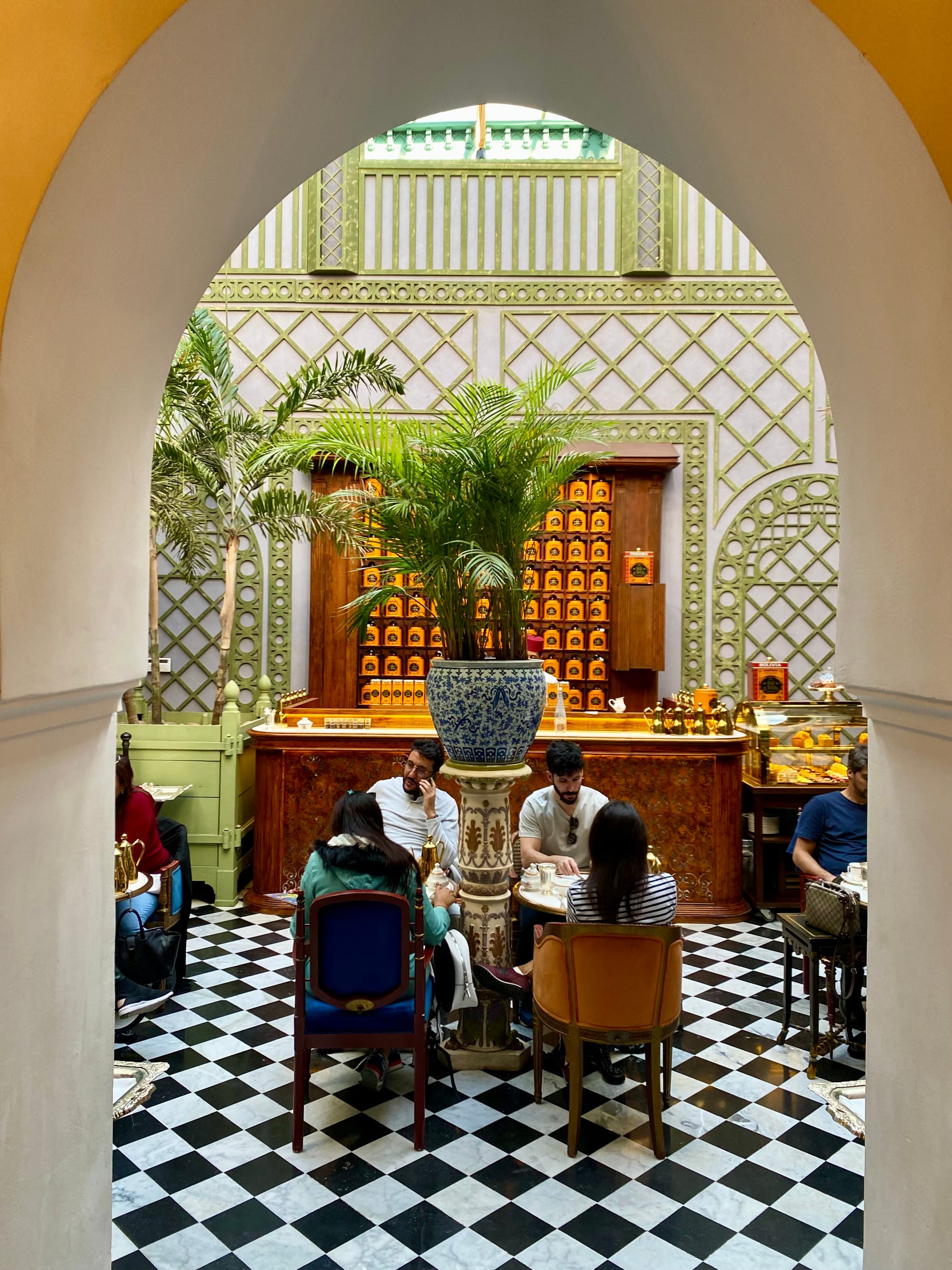 Once inside, fez-capped servers in white jackets pour coffee from elegant silver kettles into signature ceramics and serve light lunches alongside the beverages. The coffee menu is multiple pages–organized by geographic origin. While I was dining, I had a coffee that was grown on Mount Everest in Nepal of all places. It is one of the most extensive collections of coffee choices I’ve ever seen. There’s also an elegant shop, where ochre-tinned beans are sold with foreigner prices. The experience was remarkable, and albeit touristy, I felt like I had found something rather special and kind of “secretive” given the buried location.