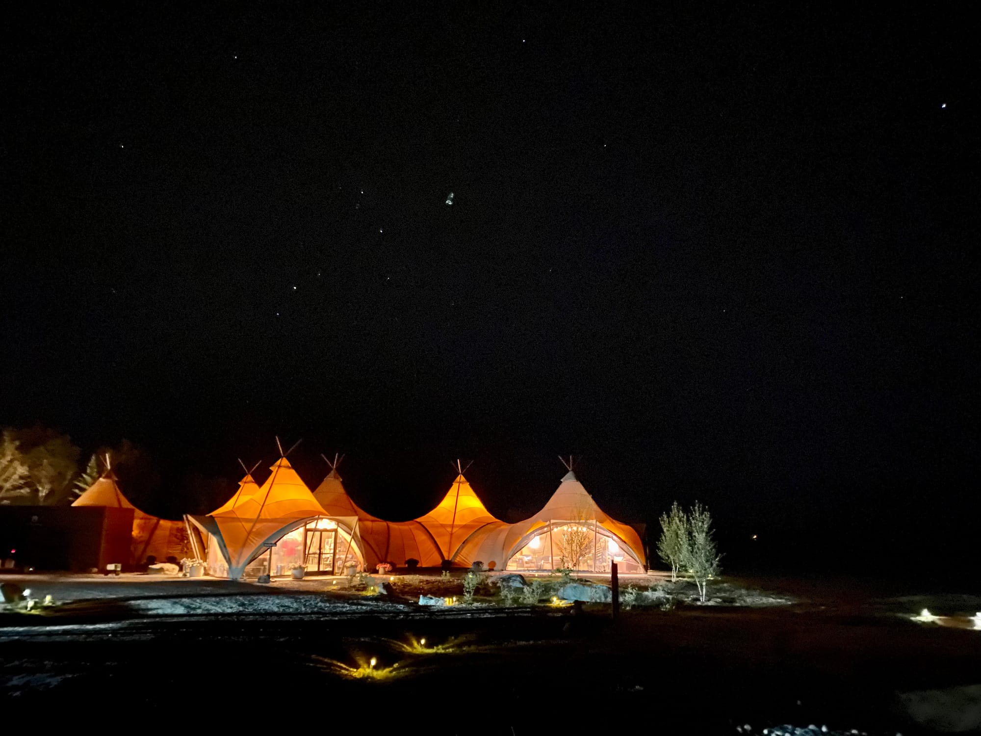 Despite a terrible arrival experience, this buzzy new glamping property photographed really well, and was a delight to experience by the starry night - hiding its defects from the day.