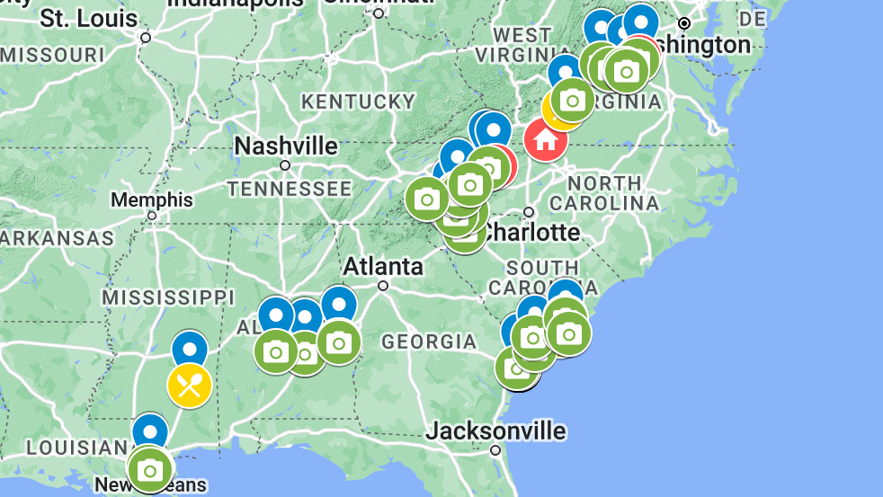 Download Our RecommendationsTravel Research: American South Road Trip - Curated Map