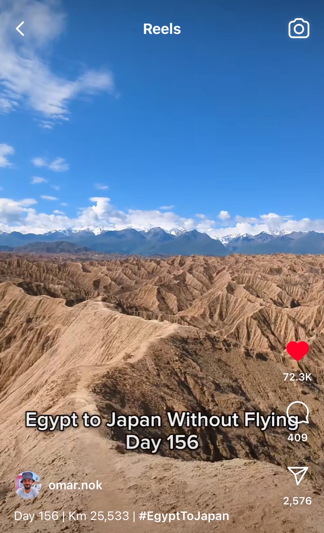 Omar Nok is at day #214 on his exceptional quest to traverse “Egypt to Japan without Flying.” Almost every day, he posts a 1-minute video showcasing his daily journey – from the people he encounters, the landscapes he sees, the tents in which he stays, and from the trains, trucks, and buses that drive him. So far, he has traversed much of the Middle East, Iran, Afghanistan, and as of recent is crossing Uzbekistan, Kyrgyzstan, Kazakhstan, and now Tajikistan, and is soon to move past the Chinese frontier. His remote wanderings have taken him to the now-dried up Aral Sea, across mountain ranges, the steppe, and more often than not, roads that dead end. It’s one of the social accounts we most look forward to watching on the daily, and you’ll likely love it too - for it depicts places and challenges we’ll likely never see ourselves.