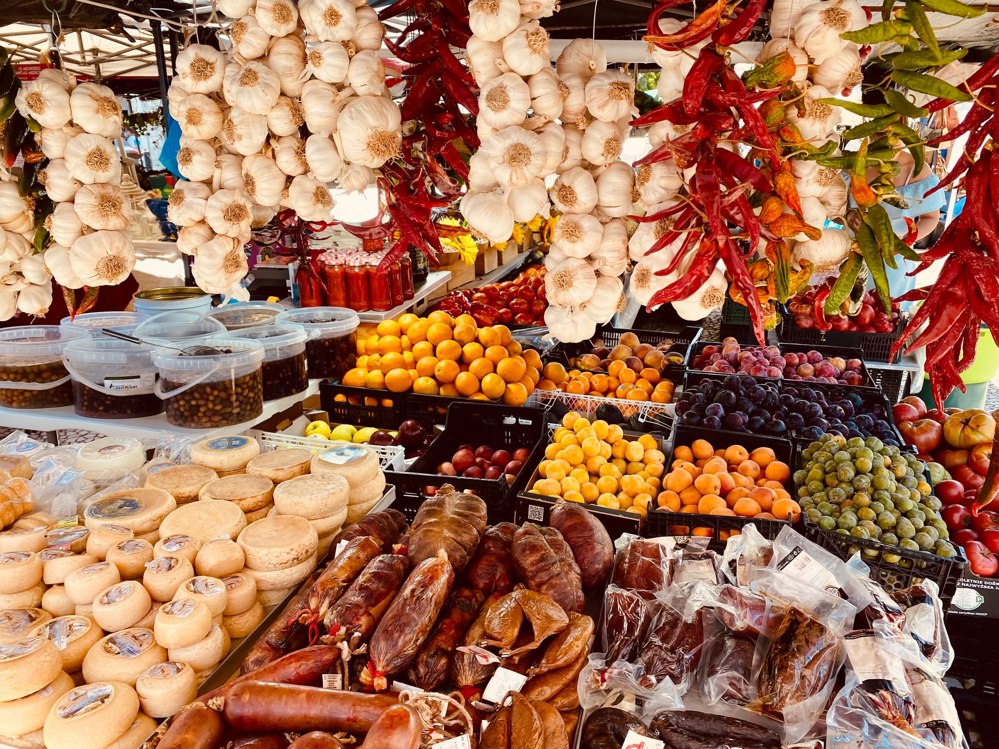Elvas, Monsaraz, Borba, Estremoz, Evora—the stunning, fortified hilltop towns of Portugal’s Alentejo—dot toasted, rolling lands of golden grasses, olive groves, and neatly combed vineyards along the eastern Spanish border. It was hot: 105 degrees (F) to be precise, but the high ceilings and thick stone walls of the local architecture kept us cool while we were mesmerized by this extraordinary landscape. We visited wineries, markets, former palaces, castles, and strolled cobbled streets. The Alentejo is Portugal’s quiet alternative to places like Umbria or Tuscany.