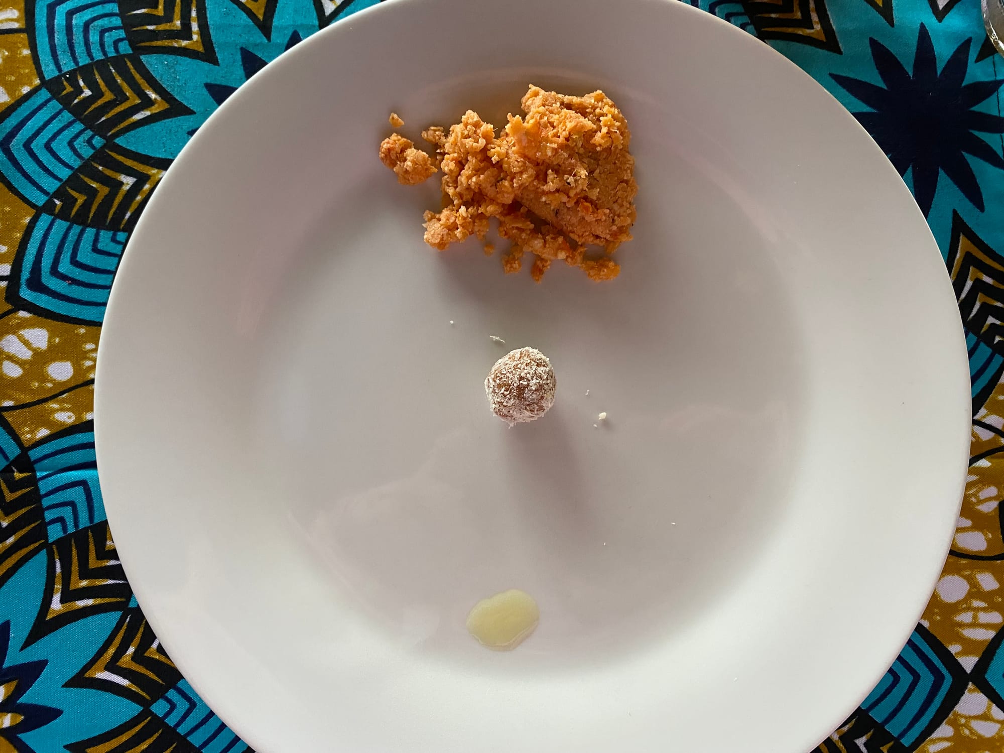 - Peanut bonbon with super hot chili oil; pumpkin, cassava, fish mash.