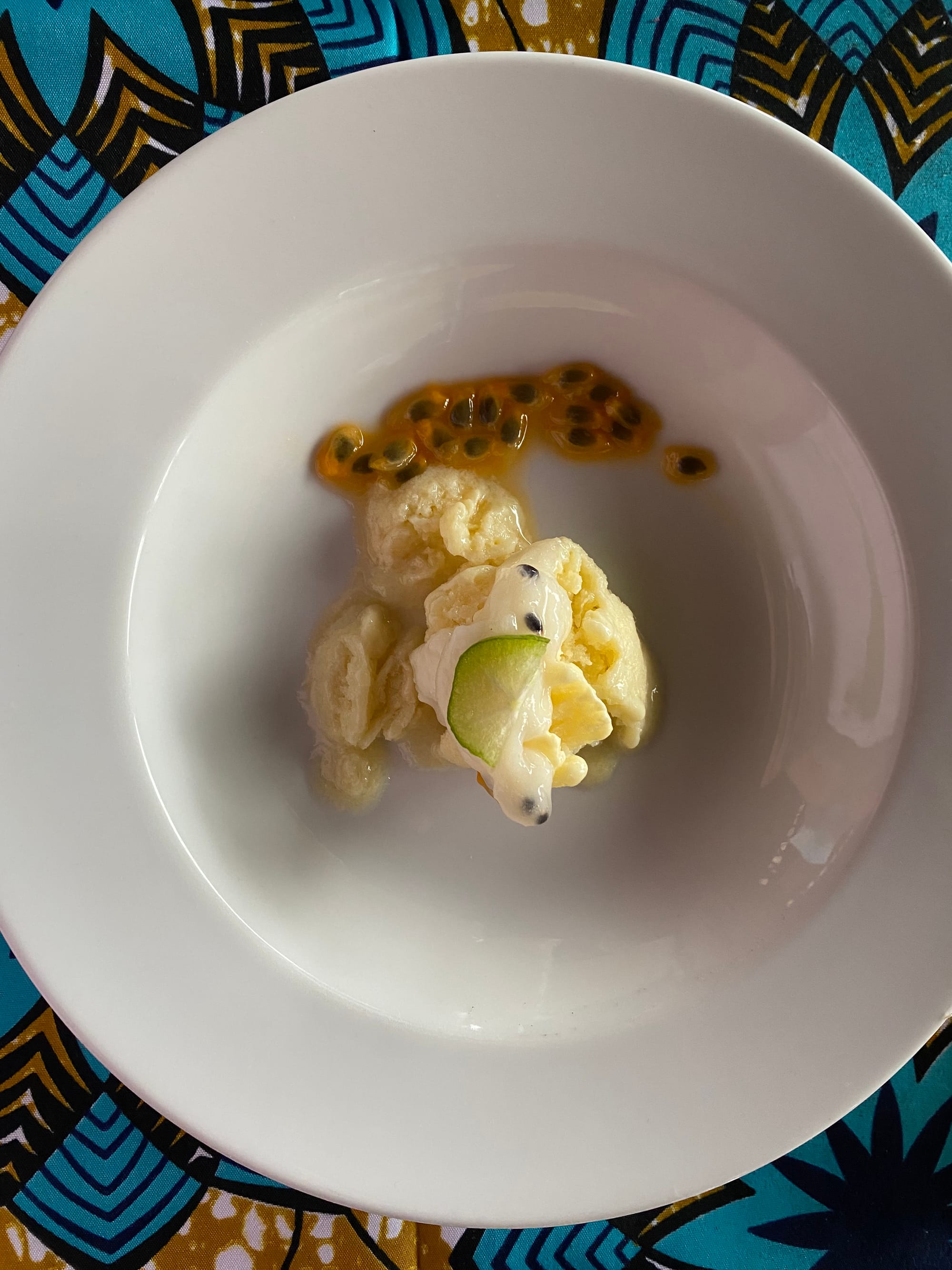 - Soursop sorbet, a tangy local fruit, passion fruit, Chinese lime. WOW!!