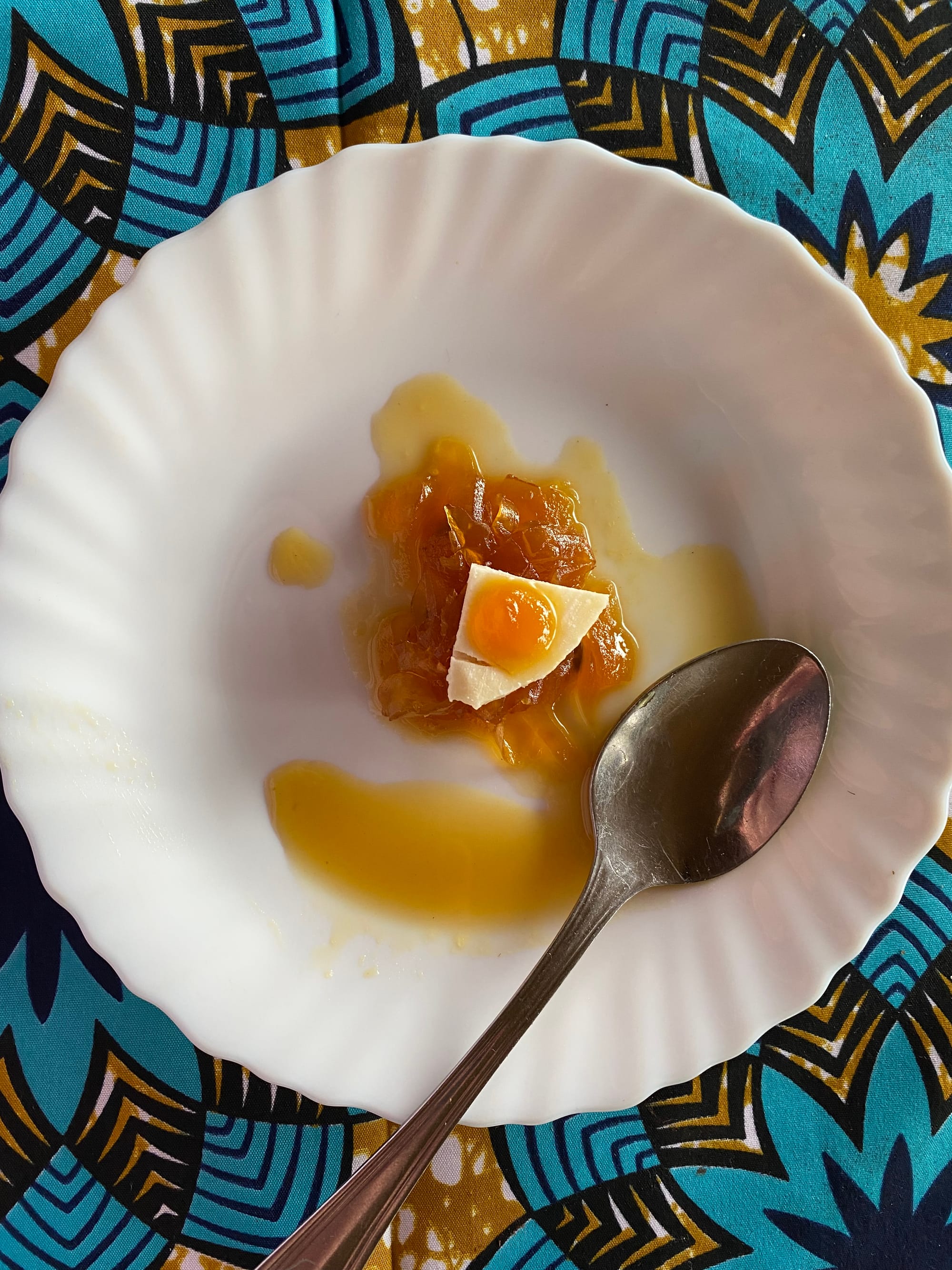- Farmers cheese, candied papaya, quince syrup.