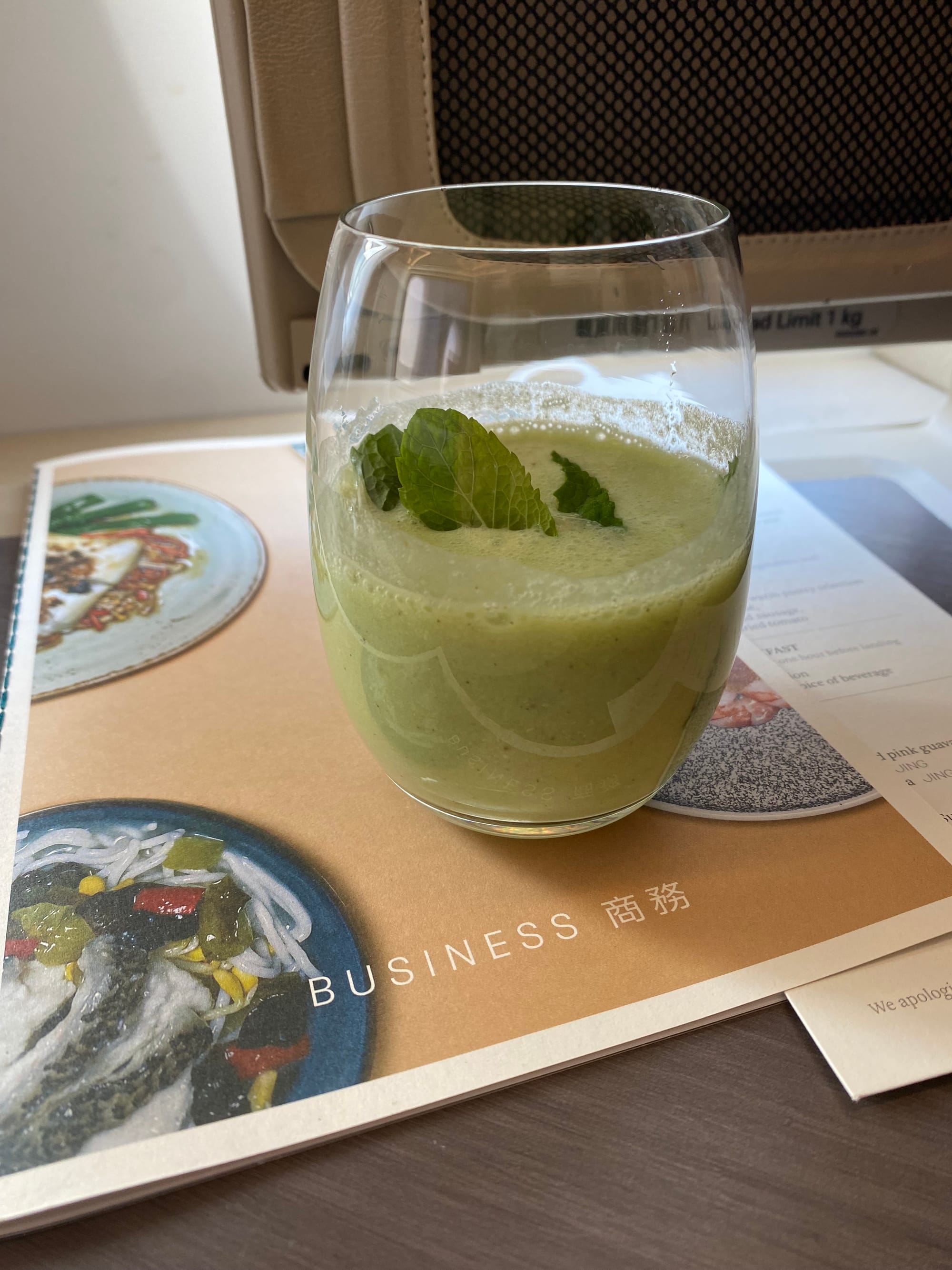 I had been saving nearly a million frequent flyer miles for my dream trip to my 7th and final continent (Australia), and the way homeward took us from the antipodal city of Perth through the - now Chinese - territory, and onward to the US. Flying one of the world’s best airlines home was part of the strategic architecture of the trip. And Hong Kong’s renowned Cathay Pacific Airways did not disappoint: cocktails were mixed and made, hot towels served — all while we were still sitting at the gate in Perth. A few airlines have signature drinks that are worth remembering: Jet Airways’ salty yoghurt lassi with cumin seeds and curry leaves is one, and Cathay’s “Delight” is now another for the books: fresh kiwi juice blended with coconut and mint was on repeat order. The bright, sage green concoction brightened the cabin as it was brought to me on white linen. Service is what this airline is known for, and so the 8 hour flight almost seemed too short given the banquet that followed onboard.