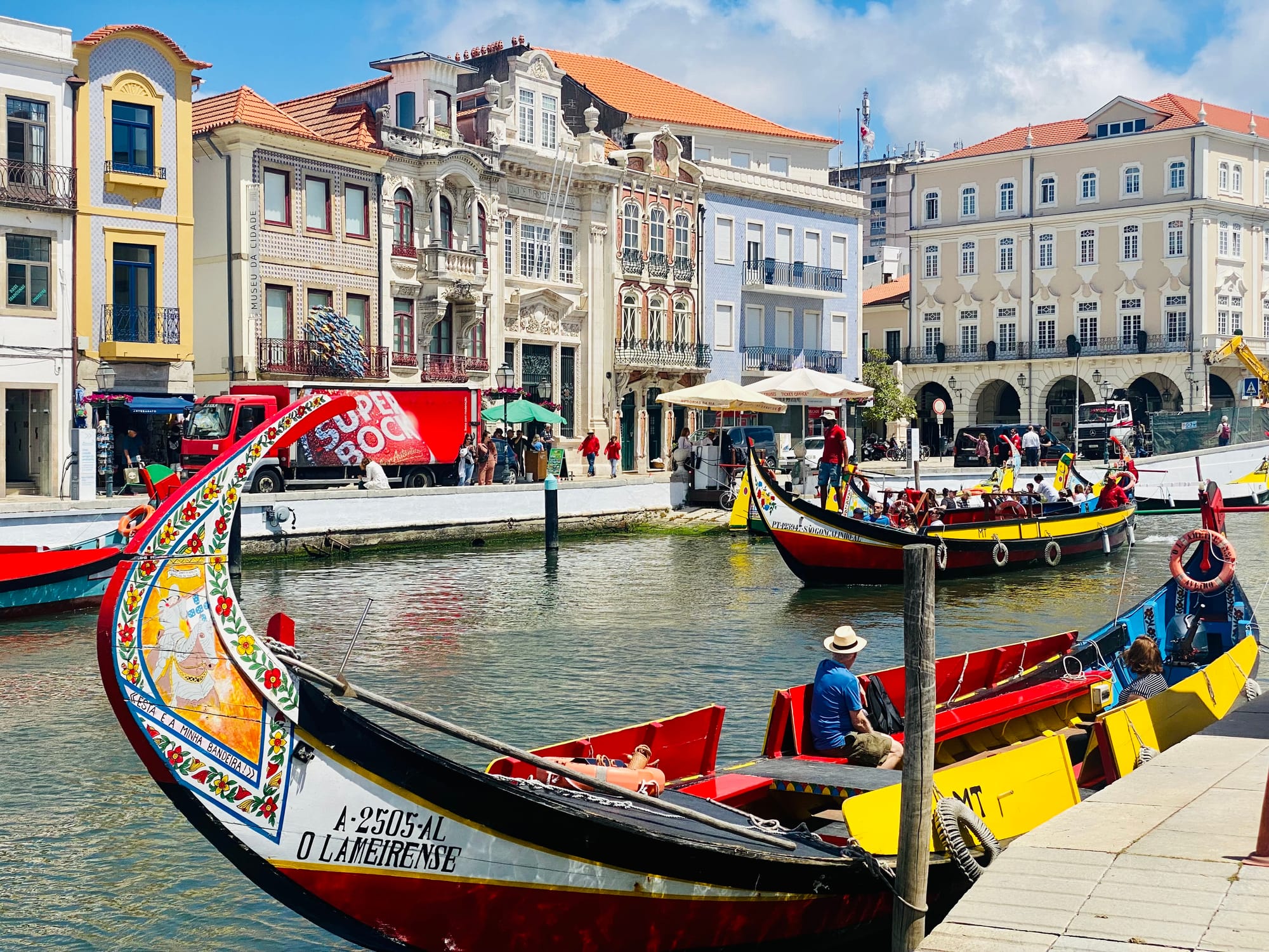 From left: Chapel of Souls, Porto; Arcos de Valdevez, Minho; Canal Central of Aveiro. At top: Costa Nova do Prado.
