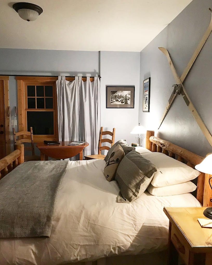 In the evenings, take a dip in the hot tub while the cold air surrounds you or cozy up in the perfectly curated rooms. Each with their own theme, we stayed in the ski-centric room, which had light blue tones and ski equipment hanging from the walls, and each has their own balcony to sit and take in the sounds of the wilderness.