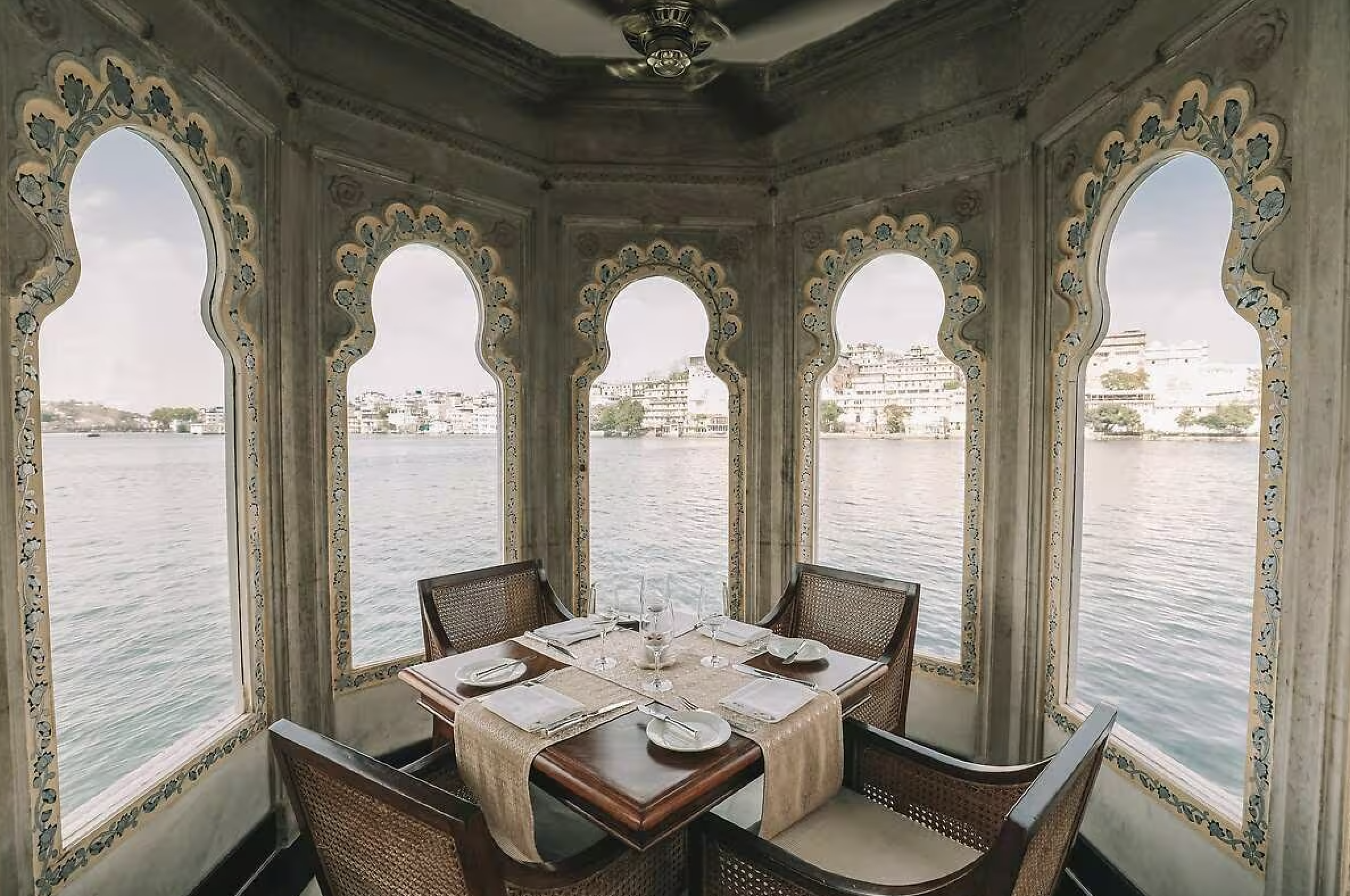 If you're a fan of James Bond, and can recall the 1983 film Octopussy, you may remember the Lake Palace: a glamourous island accessible by boat, whose arched windows, marble halls, and silken upholsteries dazzle the mind. Surrounded by Lake Pichola, and a short ride across the water from the historical city of Udaipur, guests arrive at this 16th century pleasure palace built for a Maharana. Upon stepping on shore, rose petals are sprinkled at your feet, and your own personal butler escorts you to your room. Note that standard rooms face the courtyard, while higher categories have water views. There's a spa and glorious outdoor swimming pool, ideal for celebratory photo-ops. Only residents are allowed on the island, so make sure you're staying overnight before you decide to enjoy one of the bars or restaurants.