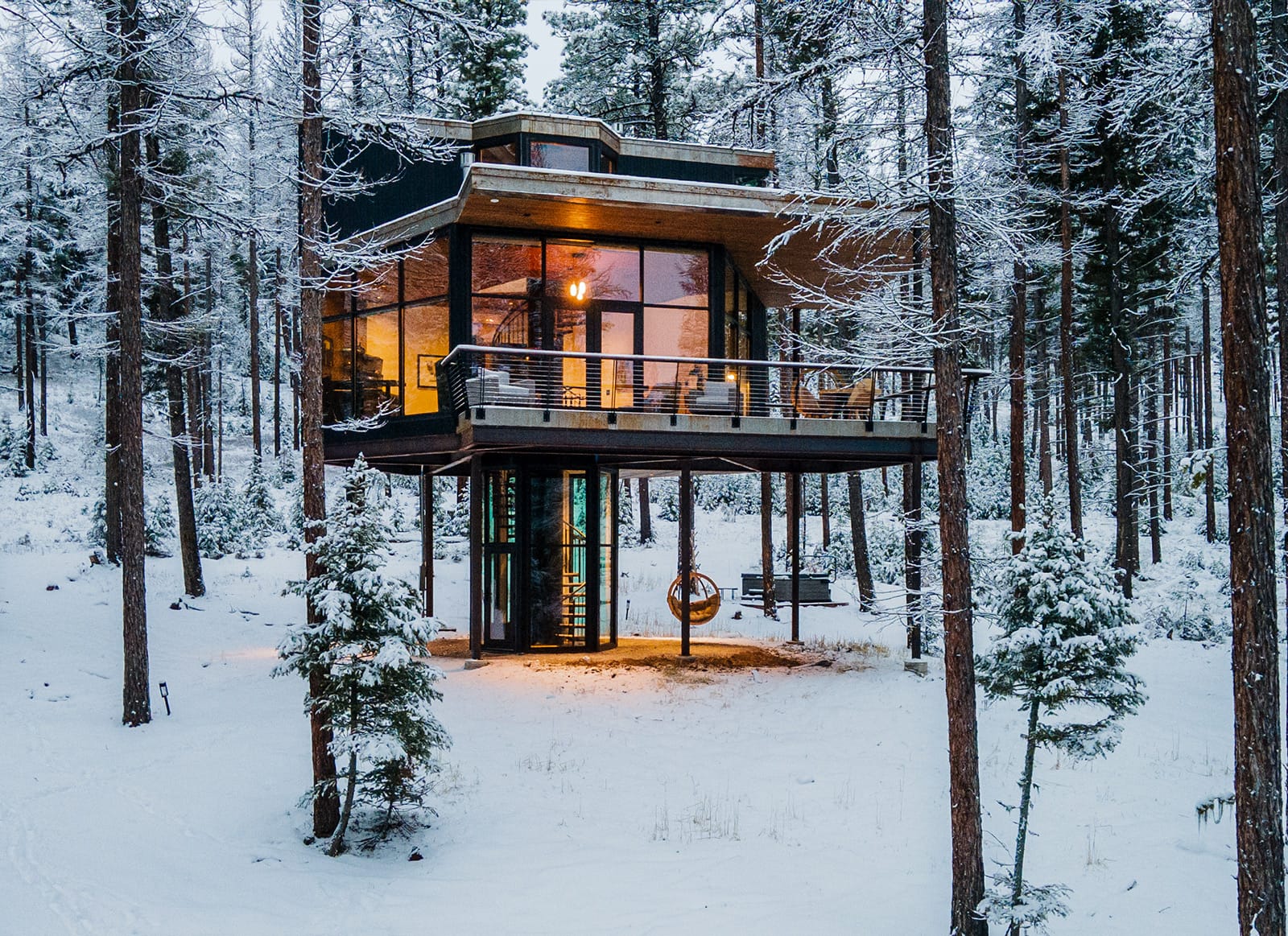 Just about 2.5 hours south of Glacier, and 4 hours north of Yellowstone is this hidden woodland lodge, a treat for those looking for a lux, Montana ranch experience en-route between the parks. A sister of the acclaimed 37,000 acre Paws-Up Ranch, the 12 modern cabins (or haus’s) of The Green O are a true indulgence. Indeed, at over $3000 usd per night, this place is quite special. Offering a range of experiences for the restless, adults ages 21+ have ATVs, bikes, hiking trails, fly fishing, horseback riding, stargazing, shooting ranges, an equestrian center, and wintertime skiing and dog sledding at their fingertips. There’s the central “social haus,” whose serious restaurant and notable chef calls the three daily meals there a “theater for the hungry.” (The restaurant allows outside guests who have advanced reservations). And the rooms are quite posh too: glass surrounds look onto the forest, each with a private hot tub, terraces, fireplaces, and ample space. After all, serenity is what The Green O offers at a premium. Guests mostly rave about it, calling it “almost heaven,” noting the food especially, but some guests find the housekeeping (skimping on towels) and service (a concierge that isn’t always on top of things) lacking compared to the price point.