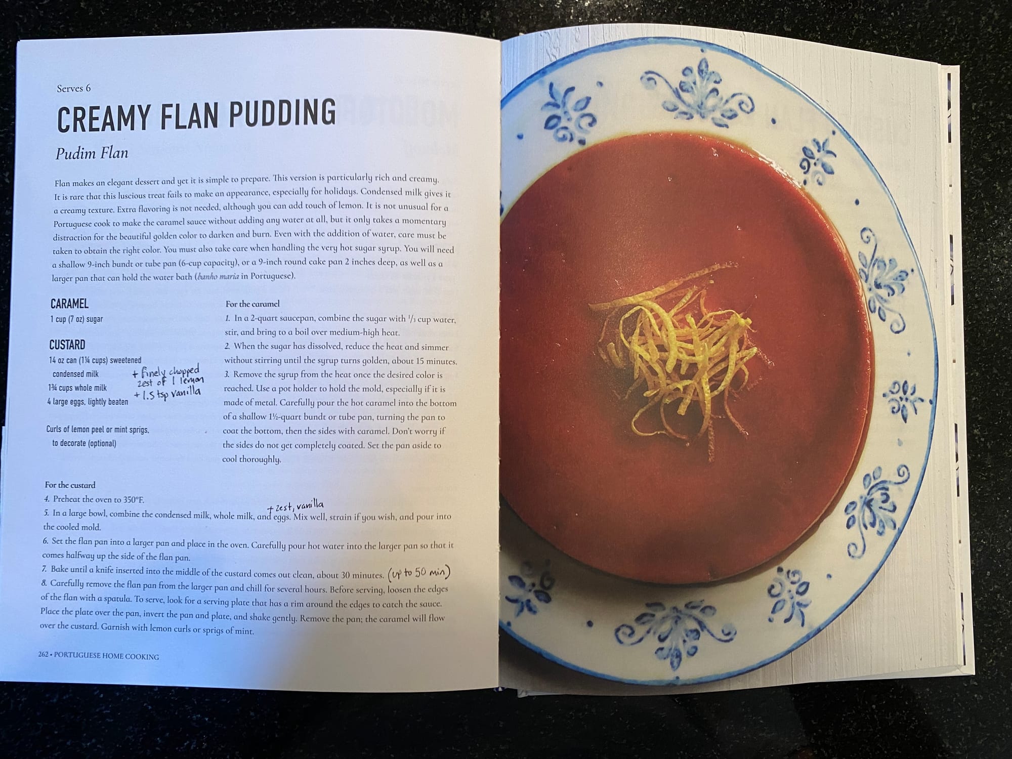 This is a classic dessert you'll find in almost any Portuguese restaurant. Of course, many Latin countries have their own version of it, but the Portuguese really do flan best. I've eaten a lot of these eggy-caramel puddings in my day, but the recipe from the book "Portuguese Home Cooking" produces a master version of it.